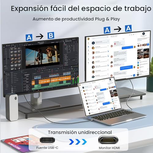 Cable HDMI compatible y fiable: el cable USB C a HDMI es plug and play, no requiere instalación de controlador, lo que te proporciona una solución conveniente y rápida para convertir instantáneamente el puerto USB-C de tu dispositivo en un puerto HDMI sin retraso, sin parpadeo y sin pérdida de tiempo. Conecte uno o dos monitores/televisores con resoluciones de hasta 4K@30Hz. Asegúrese de que sus dispositivos de entrada y salida admiten 4K