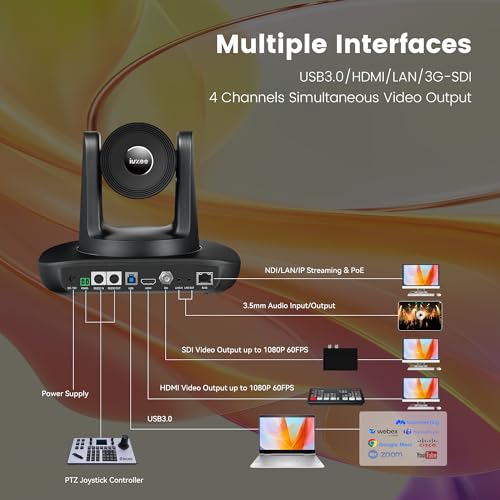 La cámara de transmisión en vivo es compatible con transmisión de audio y video HDMI, SDI, USB y IP (el dispositivo de audio no está incluido), y proporciona alimentación PoE (802.3af) a través de Ethernet. También es compatible con códecs H.264, H.265 y MJPEG, que es ideal para todo tipo de transmisión en vivo audiovisual profesional, videoconferencia y producción de video. Perfectamente compatible con OBS, vMix, Facebook, Youtube y otros software de transmisión de video en vivo.