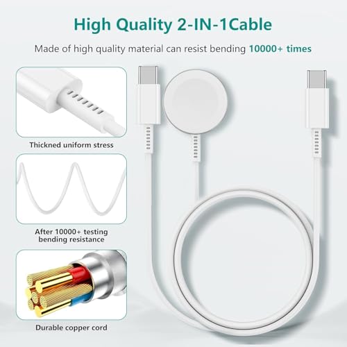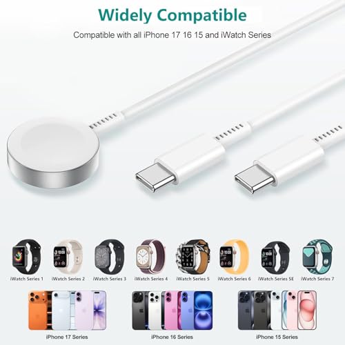 Especificaciones: Cargador USB C 2 en 1 para Apple Watch, [certificado MFi] Cable de carga rápida tipo C para iPhone iWatch de 6 pies para Apple Watch Series Ultra 11/10/9/8/7/SE/6/5/4/3/2/1/iPhone 17 Air/ 17/16 Pro