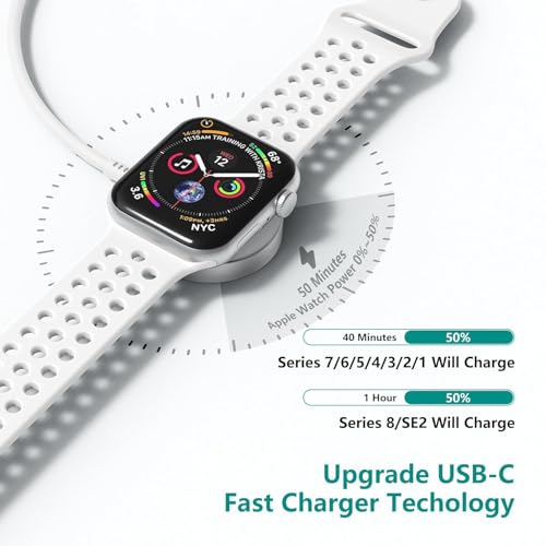 Estación de carga magnética 2 en 1 para iPhone, Apple Watch y AirPods: este cable de carga USB-C todo en uno combina un puerto USB-C y un cargador magnético integrado para Apple Watch, lo que te permite cargar simultáneamente tu iPhone y Apple Watch, o AirPods (o iPad) con un solo cable. Carga completamente tu iPhone o Apple Watch en solo 2.5 horas.