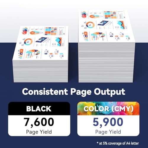 Imprime más, paga menos: nuestro negro es de 7,600 páginas por cartucho de tóner y el color es de 5,900 páginas por cartucho de tóner con una cobertura del 5%; ya sea que estés imprimiendo documentos comerciales o informes importantes, disfrutarás de resultados duraderos que se mantienen al día con tu ritmo ocupado, mientras reduce tus costos de impresión