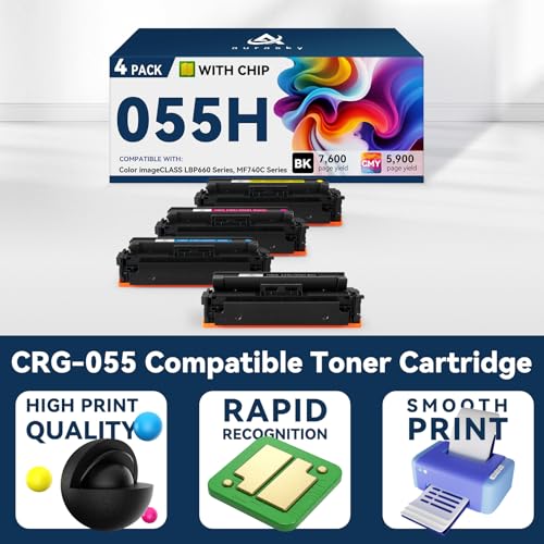 Cartucho de tóner de repuesto compatible para Canon 055 055H Cartucho de tóner de alta capacidad para impresora Canon Color ImageCLASS MF743Cdw MF741Cdw MF746Cdw MF743 (negro cian magenta amarillo, 4