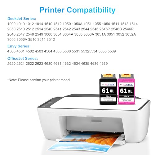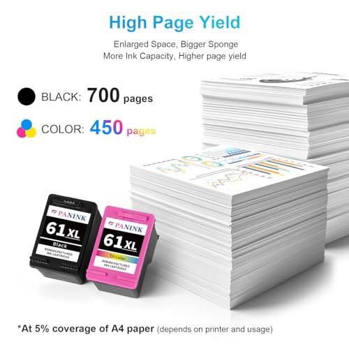 Contenido del paquete: PANINK remanufacturados hp 61 xl cartuchos de tinta combo pack reemplazo para cartuchos de tinta HP Envy 4500 cartucho de tinta hp envy 5530 (1 negro, 1 tricolor)