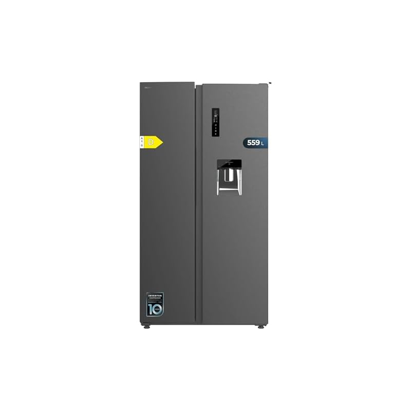 Frigorífico SBS con 559 litros de capacidad. Clase D: clasificación energética óptima para un frigorífico. Motor inverter plus: ahorro de energía y de dinero. Gracias al sistema se mantiene la temperatura interior del frigorífico sin incurrir en mayor gasto, midiendo las condiciones que hay en el interior del frigorífico y gestiona el funcionamiento en consecuencia.