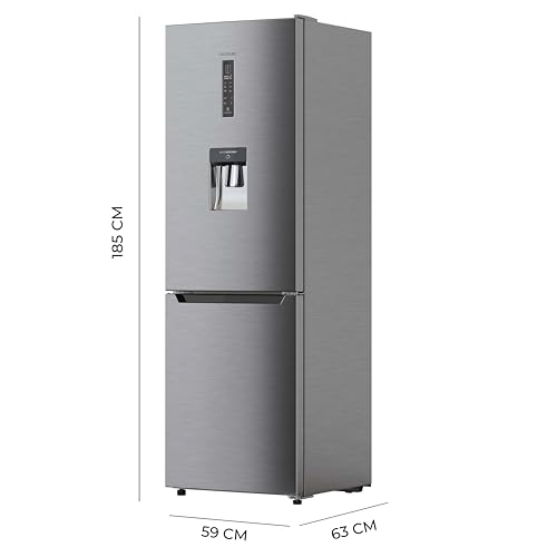 Cecotec Frigorífico combi inox, 185,5cm de alto y 59,5 cm de ancho, con 322 litros de capacidad, compresor Inverter Plus, Total No Frost, dispensador de agua, clase energética D y con sistema Multi Air Flow. Además, cuenta con el modo Fast Cooling.