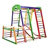 Gimnasio en casa de los niños es un montaje de los deportes para los niños, sino que también puede ser un regalo memorable para el cumpleaños de un niño. Los niños pueden aprender a trepar por la escalera, salir por sí mismas en los postes, colgar en los anillos y subir a la red de la cuerda. Este conjunto permite la realización de todos estos elementos, que son muy útiles para la salud de los niños `s, el desarrollo de la coordinación y habilidades motoras, sino que también ofrece entretenimiento de alta calidad. El haya y el abedul, a partir del cual se fabrica el conjunto, dan a este centro deportivo notable durabilidad. Gimnasio en casa de los niños es ligero, no requiere ningún archivo adjunto. Es un compacto y bien diseñado deportes y juegos de azar central, que puede ser transportado sin un esfuerzo especial y rápido y es fácil de instalar