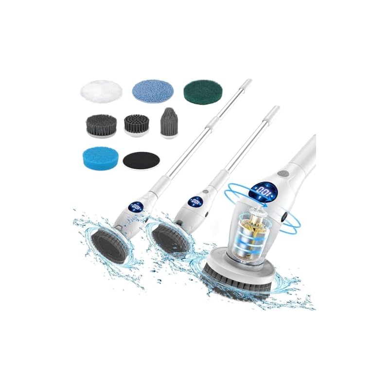 Fácil de limpiar: este estropajo eléctrico es ligero, práctico y potente, te ahorra tareas domésticas engorrosas, hace que las tareas domésticas sean muy divertidas, tiene un mango largo extendido, sin arrodillarse ni agacharse, y reduce la carga general del cuerpo.