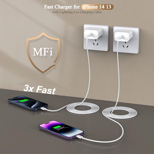 【Certificado MFi de Apple para iPhone/iPad】Juego de 2 cargadores rápidos iPhone con enchufe de pared USB C y cable de cargador extra largo de 10 pies con sistema de protección múltiple que evita que tu dispositivo sufra sobrevoltaje, sobrecarga, sobrecalentamiento y es liviano, perfectamente compatible con Apple iPhone 14 Pro Max/14 Pro/14 Max/14/13 Pro Max/13 Pro/13 mini/13/12 Pro Max/12 Pro/12 mini/12/11 Pro Max/11 Pro/11/SE/XS Max/XS/XR/X/8/8 plus/7/7 plus/6/6 Plus/5/5c/5s, iPad/iPad mini/iPad Air/iPad Pro, AirPods/AirPods Pro.