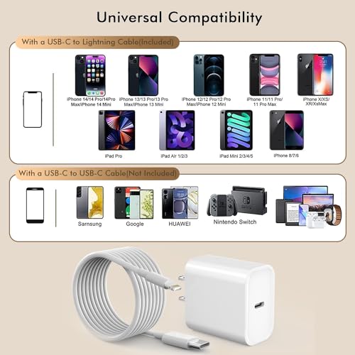 【Certificado MFi de Apple para iPhone/iPad】Juego de 2 cargadores rápidos iPhone con enchufe de pared USB C y cable de cargador further largo de 10 pies con sistema de protección múltiple que evita que tu dispositivo sufra sobrevoltaje, sobrecarga, sobrecalentamiento y es liviano, perfectamente compatible con Apple iPhone 14 Professional Max/14 Professional/14 Max/14/thirteen Professional Max/thirteen Professional/thirteen mini/thirteen/12 Professional Max/12 Professional/12 mini/12/eleven Professional Max/eleven Professional/eleven/SE/XS Max/XS/XR/X/8/8 plus/7/7 plus/6/6 Plus/five/5c/5s, iPad/iPad mini/iPad Air/iPad Professional, AirPods/AirPods Professional.