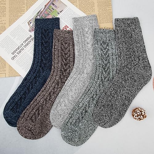 Chalier Finery 5 Pares Calcetines Calcetines de Invierno, Térmicos de Lana para Mujer Calcetines de Invierno Colores para Senderismo y Correr, Regalos de Cumpleaños