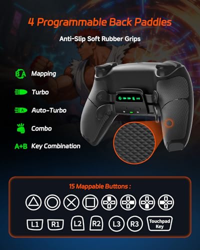 CHARM FOCUS Mouse Click PS5 Controller with 4 Remappable Back Paddles, TMR Magnetic Anti-Drift Joysticks, 2100mAh Battery for Wireless Play, Ergonomic Soft Rubber Grips for PS5 & PC Gaming, Black