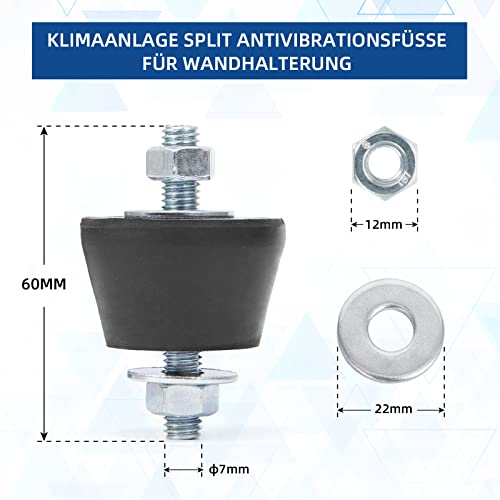 4 x Pies Antivibración Amortiguador de Vibraciones para Aire Acondicionado y Bomba de Calor de Montaje en Pared, es adecuado para todas las marcas y modelos.