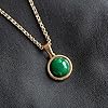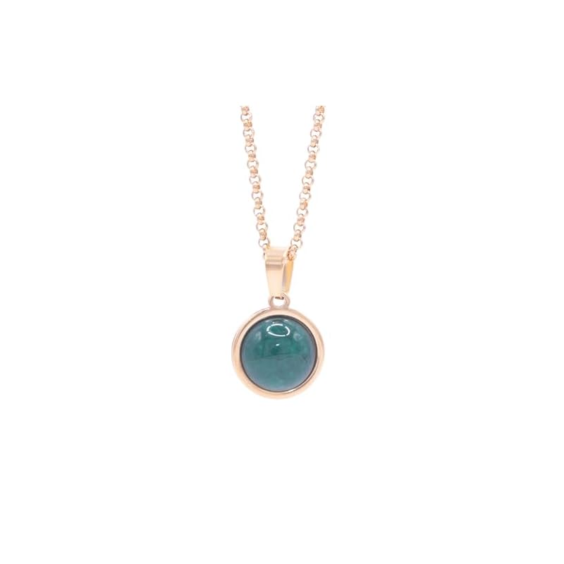Collar con colgante de piedra natural Jade Verde para hombre o mujer con cadena de acero inoxidable dorado, media piedra de 12mm, total con la base 13mm y cadena de 40 extensible a 45 cm.