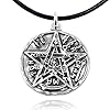 Collar colgante Tetragramaton de 30mm en plata, amuleto de plata envejecida