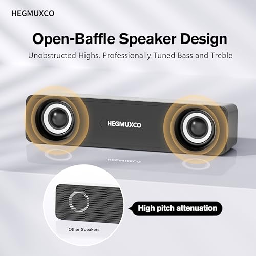 [Compact Soundbar Design] This small sound bar features a slim design that enhances your desk without taking up space. Its open-baffle style delivers clearer highs, while the anti-magnetic design ensures stable audio performance even when placed close to monitors