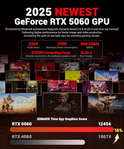 【Calidad cinematográfica a velocidades sin precedentes】L. a. PC para juegos FIREBAT está equipada con L. a. última GPU RTX 5060 2025, que funciona con L. a. arquitectura Blackwell, ofreciendo hasta 572 TOPS de rendimiento impulsado por IA, desbloqueando experiencias transformadoras del mundo actual con trazado de rayos completo. Con una pantalla IPS de brillo de 16 pulgadas sixteen:10, 2560 x 1600, 300 Hz, 500 nits (cd/m²), que ofrece una impresionante calidad de imagen y sonido, con un teclado retroiluminado RGB, lo que lo hace perfect para juegos de alta resolución y alta actualización.