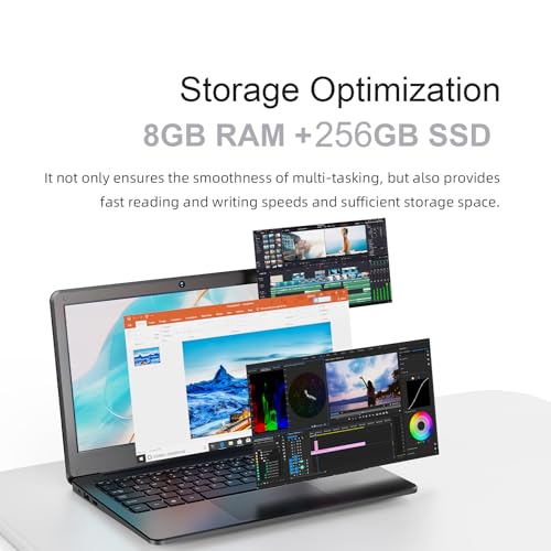 8 GB de RAM y 256 GB de ROM: esta computadora portátil viene con 8 GB DDR4 y un SSD de alta velocidad de 256 GB, proporciona un gran espacio para un funcionamiento eficiente de las aplicaciones y multimedia más complejas. La combinación perfecta de rendimiento, consumo de energía, nuestro portátil está diseñado para elevar su experiencia informática.