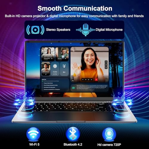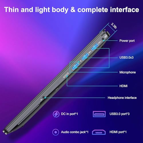 Pantalla de 15,6 pulgadas: la computadora portátil está equipada con una pantalla UHD de 15,6 pulgadas, 1920 × 1080 para reproducción de video HD sin problemas, disfruta de una reproducción suave en una pantalla a color vibrante y realista. La relación pantalla a cuerpo del 93% del portátil ofrece un área de visualización expansiva al tiempo que reduce los bordes que distraen para una experiencia más inmersiva. La relación de aspecto 16:10 proporciona espacio vertical adicional, mejorando la eficiencia para tareas como compras en línea, edición de documentos y más.