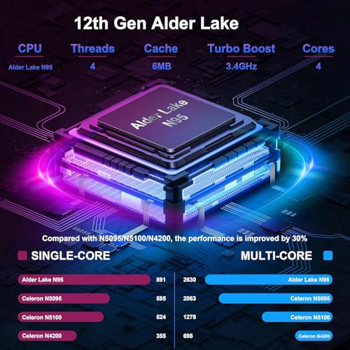 Alto rendimiento: la computadora portátil utiliza el procesador Alder Lake N95 de última generación de 12ª generación con una frecuencia de ráfaga de 3.4GHz, 4 núcleos/4 hilos, caché de 6 MB. Integró gráficos UHD de hasta 1200MHz para un rendimiento gráfico más fuerte. Es una experiencia de usuario sin problemas para el trabajo, el estudio y el entretenimiento.