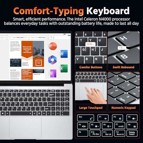 Especificaciones: Computadora portátil de 15.6 pulgadas, Win 11 portátiles con 8 GB de RAM 256 GB SSD, pantalla 100% sRGB, procesador Celeron N4000 (hasta 2.6 GHz) portátil, WiFi de doble banda, BT 4.2, HDMI