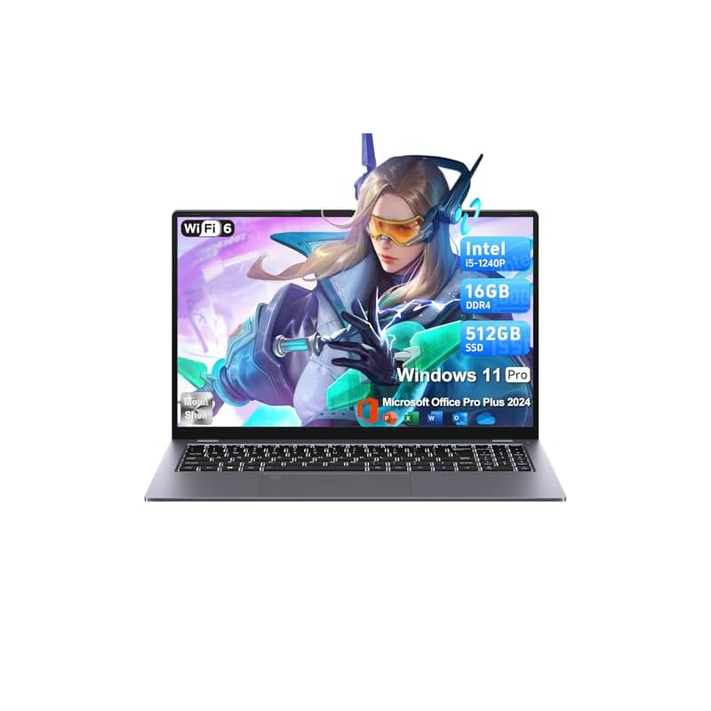Computadora portátil para juegos, 12ª generación 12-Core i5-1240P (Beat i5-12450H, hasta 4.4 GHz) 16 GB DDR4 512 GB NVMe, portátil Win11, pantalla IPS FHD de 15.6 pulgadas, huella digital