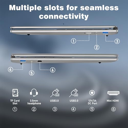 Conectividad versátil para todas las necesidades: appropriate con WiFi 5 y Bluetooth 4.2 para conexiones de crimson estables y fácil emparejamiento con auriculares, mouse o altavoces. También tiene 2 puertos USB 3.0 y 1 puerto Mini HDMI: puede conectar monitores externos para trabajo de doble pantalla, conectar discos U para transferir archivos o usar auriculares para escuchar en privado, cubriendo todas las necesidades diarias de conectividad.