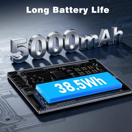 Batería de larga duración y construcción ultraportátil: equipada con una batería recargable de 5000 mAh/38.5 Wh, esta computadora portátil ofrece de 5 a 6 horas de uso continuo, suficiente para alimentar un día completo de clases o trabajar sin recarga frecuente. Pesa solo 3.53 libras y mide 0.78 pulgadas de grosor, cabe sin esfuerzo en mochilas, por lo que es el compañero perfecto para viajeros, estudiantes y profesionales en movimiento.