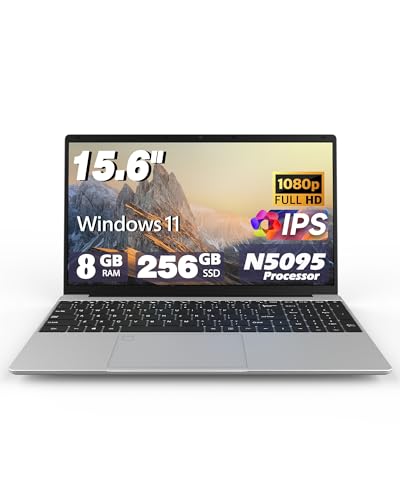 Computadoras portátiles, pantalla IPS 1080P de 15.6 pulgadas, procesador N5095 4C 4T hasta 2.9 GHz, 8 GB de RAM, 256 GB SSD, portátiles con teclado retroiluminado de reconocimiento de huellas