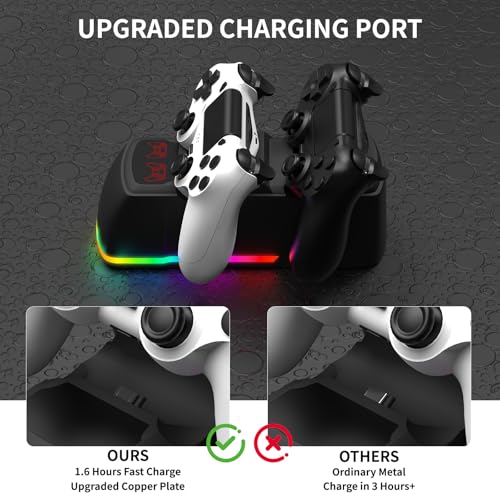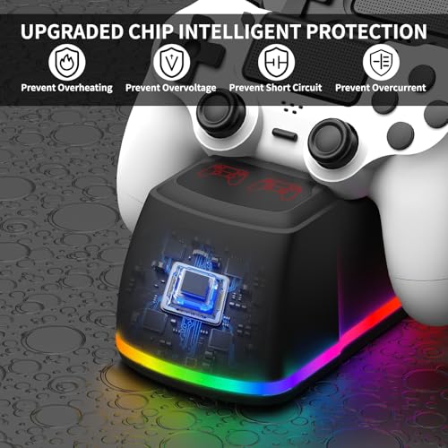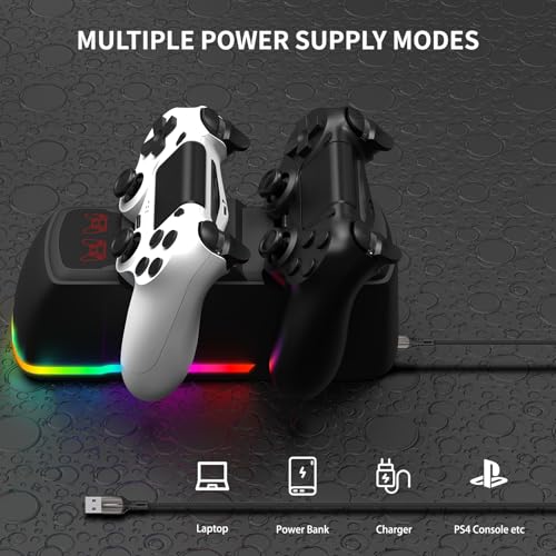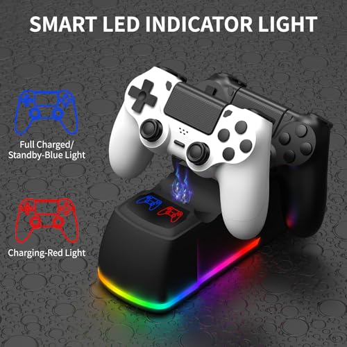 Controller Charger Dock Station for PS4 with RGB Light,Fast Charging for 2 PS4 Controllers,Charging Station Replacement for PlayStation 4 Charger