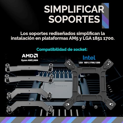 Simplifique los soportes: los soportes rediseñados simplifican la instalación en plataformas AM5 y LGA 1851|1700.