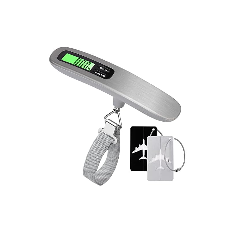Coolzon Báscula de Equipaje Digital, 110 lb/50 kg Capacidad con dos etiquetas de Maletas, Balanza Muy Adecuada para Viajes, Viajes de Negocios o uso Familiar