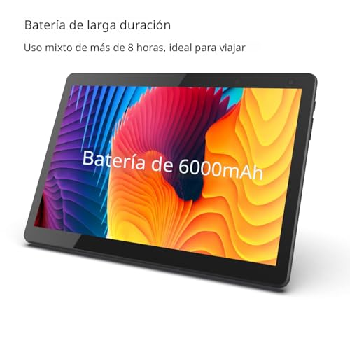 Pantalla HD de 10 pulgadas: esta tableta de 10 pulgadas utiliza una pantalla IPS de 800 x 1280, el texto es nítido y claro. Ángulo de visión mayor y colores más brillantes. Asegúrese de que una experiencia visual cómoda al ver videos y navegar por páginas web. Además, la tableta utiliza una batería recargable de 6000 mWh para 8-10 horas de uso mixto, puedes trabajar y jugar durante todo el día.