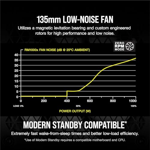 CORSAIR RM1000x Fuente de alimentación ATX totalmente modular – 80 Plus Gold – Ventilador de bajo ruido – Cero RPM – Negro (renovado)