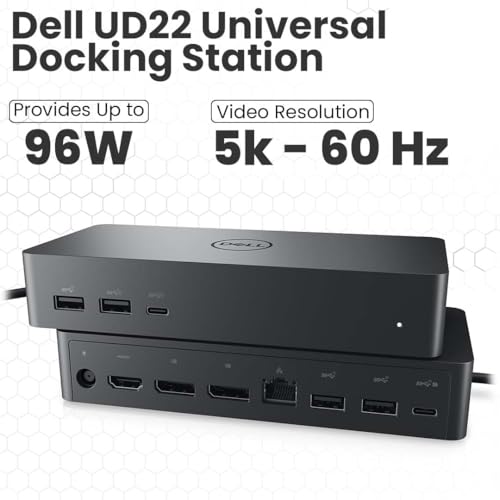 Especificaciones: Crossery Paquete de estación de acoplamiento Dell UD22, incluye Dell Universal Dock UD22, cable HDMI y Ethernet, adaptador de corriente de 130 W – Estación de acoplamiento USB-C para laptop – Solución de conectividad eficiente (renovado)