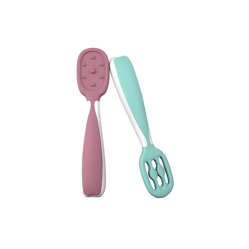 Cuchara bebe aprendizaje en 2 etapas para vajilla bebe-Juego de cubiertos bebe con 2 precucharas bebe blw de silicona-Recomendada por nutricionistas y Expertos Baby Led Weaning-Alimentacion autoguiada