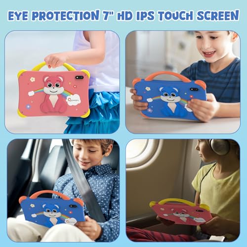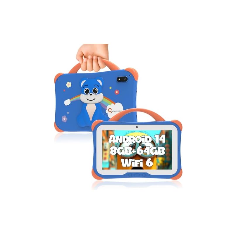 CWOWDEFU Tableta para niños de 7 Pulgadas,8GB+64GB,Android 14 Tableta para niños,Tableta de Aprendizaje para niños pequeños con Estuche,4000 mAh,Control Parental,cámara Dual,FM/GPS/OTG(Azul)