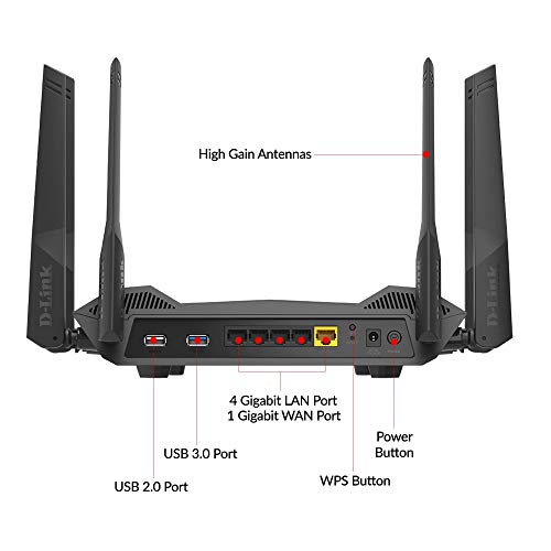 Especificaciones: D-Link WiFi 6 Router AX5400 MU-MIMO Control de voz funciona con Alexa & Google Assistant, red de Internet Gigabit de doble banda para juegos (DIR-X5460-US) (renovado)