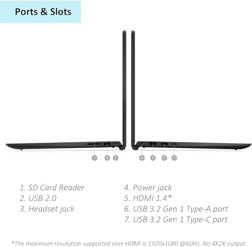 Conectividad versátil: mantente conectado con Wi-Fi y Bluetooth y variedad de puertos. La laptop Dell Inspiron 15 Touch cuenta con 1 USB-C 3.2, 1 USB-A 3.2, 1 USB-A 2.0, 1 HDMI 1.4 y 2 ranuras de memoria, lo que te permite conectar una variedad de periféricos y dispositivos para una mayor productividad.