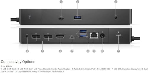 Especificaciones: DELL Estación de acoplamiento Thunderbolt WD19TB con adaptador de alimentación de CA de 180 W (entrega de energía de 130 W) – (RENOVADO)