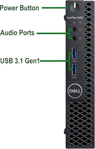 Características clave: Dell OptiPlex 3060 Tiny – Procesador Intel Core i5-8500T 2.10GHz -32GB DDR4 Ram -Unidad de estado sólido (SSD) de 512 GB NVMe – Adaptador WiFi -Incluye teclado y mouse con cable – Windows 11 Professional (64 bits) -Sin unidad de DVD -Gráficos Intel UHD integrados -Sonido integrado -Red: 10 39.4 in 100 Gigabit Ethernet (RJ-45) -Micrófono -Auriculares -1x Puerto de Pantalla -1x Puerto HDMI-6x USB: Los puertos USB del panel frontal facilitan la transferencia de fotos, música y otros archivos hacia y desde su cámara digital y otros dispositivos periféricos