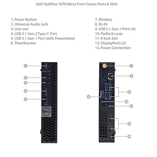 Especificaciones: Dell Optiplex 7070 MFF Micro Form Factor Desktop 9ª generación Intel Core i7-9700T 8 núcleos, 16 GB DDR4 RAM, 512 GB SSD, gráficos Intel UHD 630, Windows 10 Pro (renovado)