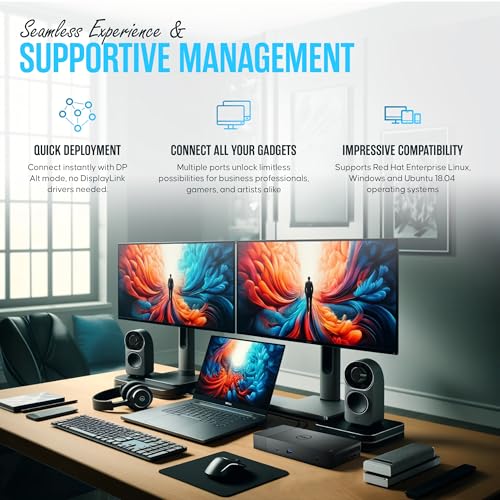 [Hub de conectividad versátil] Equipado con 2 DisplayPort 1.4, 1 HDMI 2.0B, 1 DisplayPort multifunción USB-C, 2 USB-A 3.1 (Gen 1), 1 Gigabit Ethernet RJ45 y 1 Thunderbolt 3, este concentrador ofrece una gama de puertos para una conectividad multidispositivo perfecta y transferencia de datos de alta velocidad.