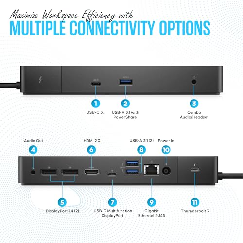 Especificaciones: Dell WD19TB Thunderbolt Dock – Estación de acoplamiento Dell Dual Monitor USB C con cable HDMI y DisplayPort de 180 W, estación de acoplamiento para laptop y computadora (renovado)