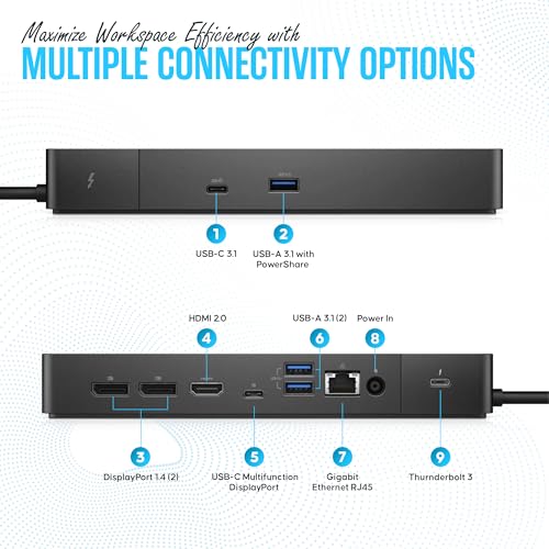 Especificaciones: Dell WD19TBS Thunderbolt Dock – Estación de acoplamiento USB C con monitor dual con 180, cable HDMI, cable DisplayPort, estación de acoplamiento para laptop y computadora Dell