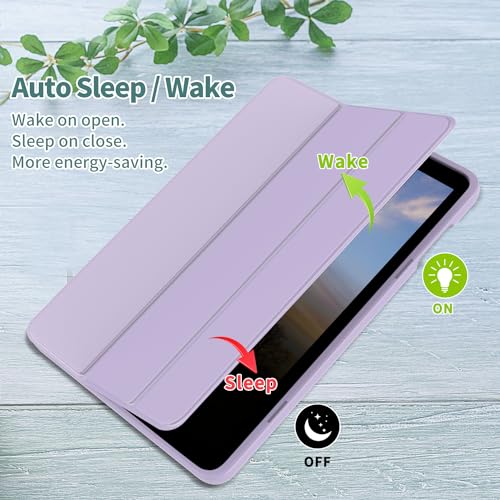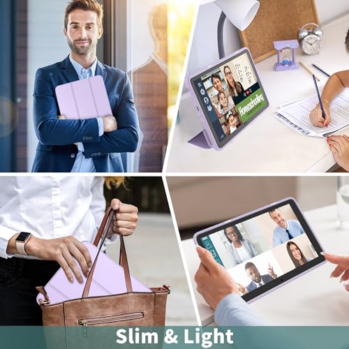 DJ&RPPQ Trifold – Funda protectora de piel sintética inteligente con soporte de doble ángulo con encendido y apagado automático, morado taro