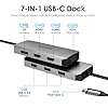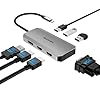 USB C Adapter Four Display Dock – Base de conexión USB C 7 en 1 con 4 puertos de salida de vídeo, HDMI dual, DisplayPort, VGA y 3x USB 2.0. Adaptador USB C Dual HDMI para portátiles Windows. Plug and Play, sin necesidad de controladores, simplemente conéctelo y transforme su dispositivo en una estación de trabajo multifunción al instante.