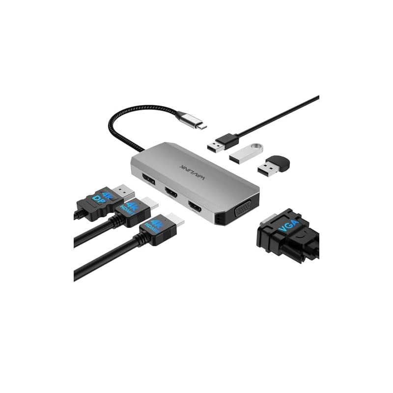 Especificaciones: Docking Station USB C para MacBook DELL XPS 13/15, Lenovo Yoga, HP Portátiles, WAVLINK Dock Station USB C para Windows, con Dual HDMI, Displayport, VGA, 3 Puertos USB 2.0, Gris