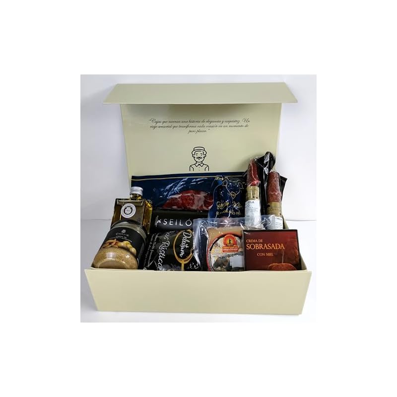 Descubre el regalo perfecto para cualquier ocasión con nuestras exquisitas cestas gourmet, presentadas en una caja exclusiva y elegante de cierre magnético. Personalizable, para que puedas expresar tus sentimientos de una manera única y sincera. Ya sea para felicitar un cumpleaños, como para enviar un mensaje de aprecio.