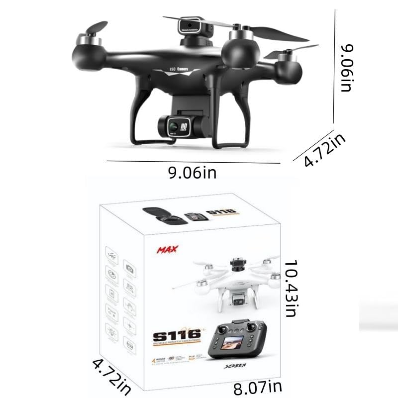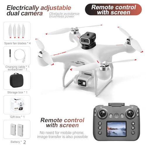 Especificaciones: Dron Hobby con control remoto de pantalla de pantalla, cámara dual 1080P, ajuste de velocidad, retención de altitud, despegue de una tecla, giros 3D, 2 baterías, flotante, motor sin escobillas