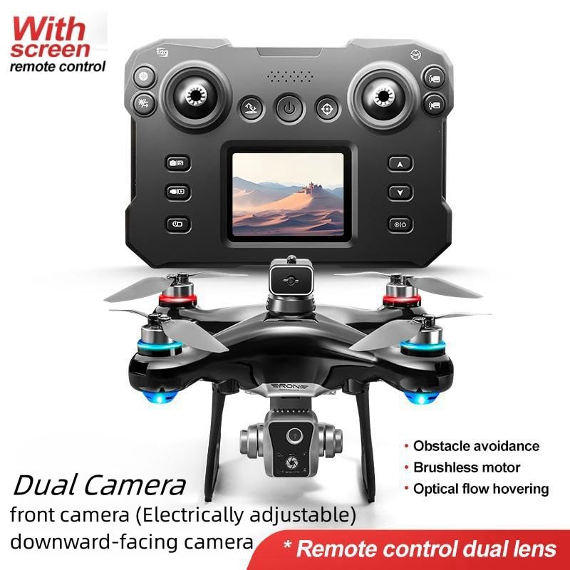 Dron Hobby con controlador de pantalla, helicóptero de avión con cámaras duales, posicionamiento de flujo óptico, motor sin escobillas, despegue/aterrizaje de una tecla, modo sin cabeza, parada de